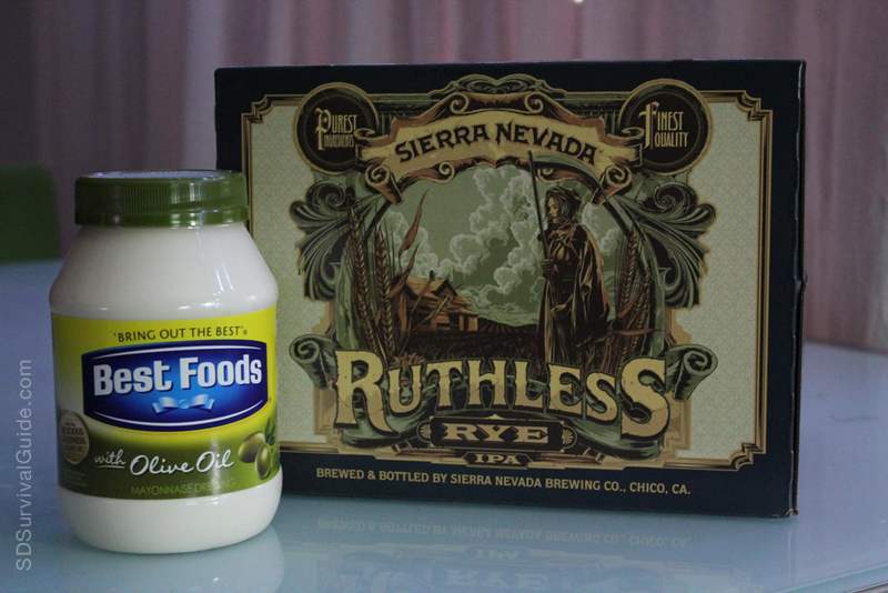 Hangover cure: beer and mayo. 1. Put the mayonaise in the pantry. 2. Drink a beer. When I bought these, just these, the cashier told me, “I think you’re the winner.”