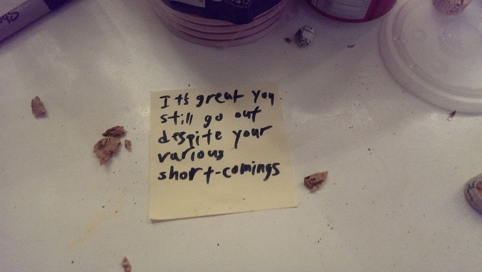 Many of my friends, however, struggled with the concept. Adorably, these kind kids could not grasp how to mimic passive aggression. We discussed formulas to generate notes. One consistent combo is to tell someone to do something you obviously don’t want to them do, and add “please,” hearts, or both. “Please throw your trash all over the floor, thank you.” Another pattern is to explain a simple concept as you would to a three-year-old. “GUESS WHAT? It turns out if you tap on the glass it stresses out this pet snake and she doesn’t want you to do that. Let’s be nice to the snake, ok? :)” You may also just rely on the passive aggression inherent in leaving a note rather than confronting someone about a problem. Extra points for anonymizing yourself or your target. For example, we kept a ledger on the fridge of money owed by friends to others.
