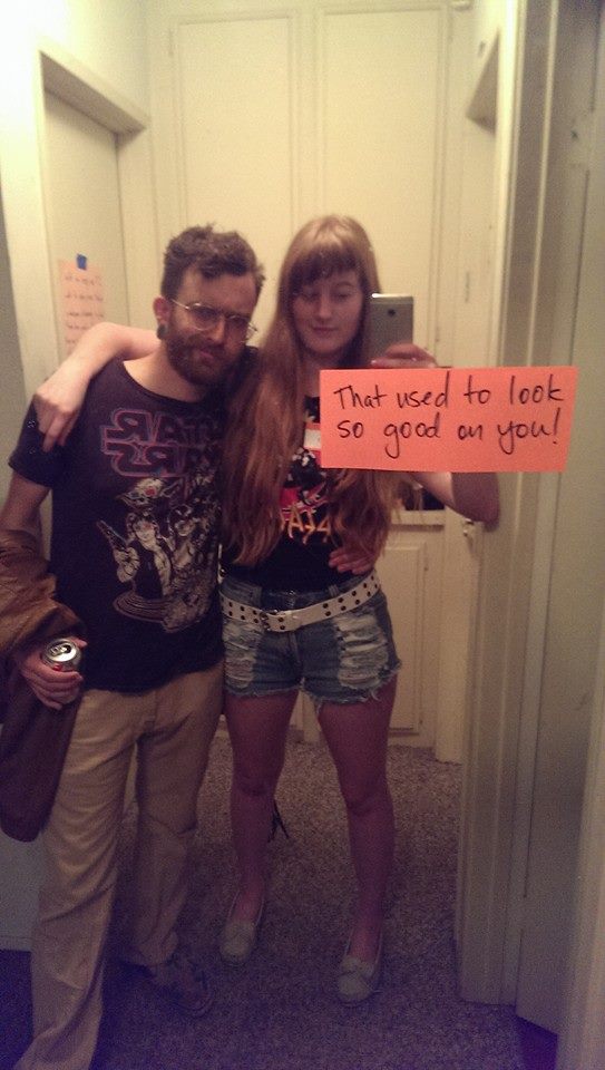 This theme is not only a delightful excuse to encourage your friends to be mean to each other, but it is also convenient to organize. For supplies, you will only need sticky notes and/or construction paper with tape (painter’s, as to not take off the house paint — your guests are going to leave cheerful little messages in the strangest places, which you will not discover for many days), and markers/pens. I also got a lot of joy out of a stack of self-stick name-tags. My friends gave out charming monickers such as “Jizz Wizard,” and “Unwitting Hipster.”